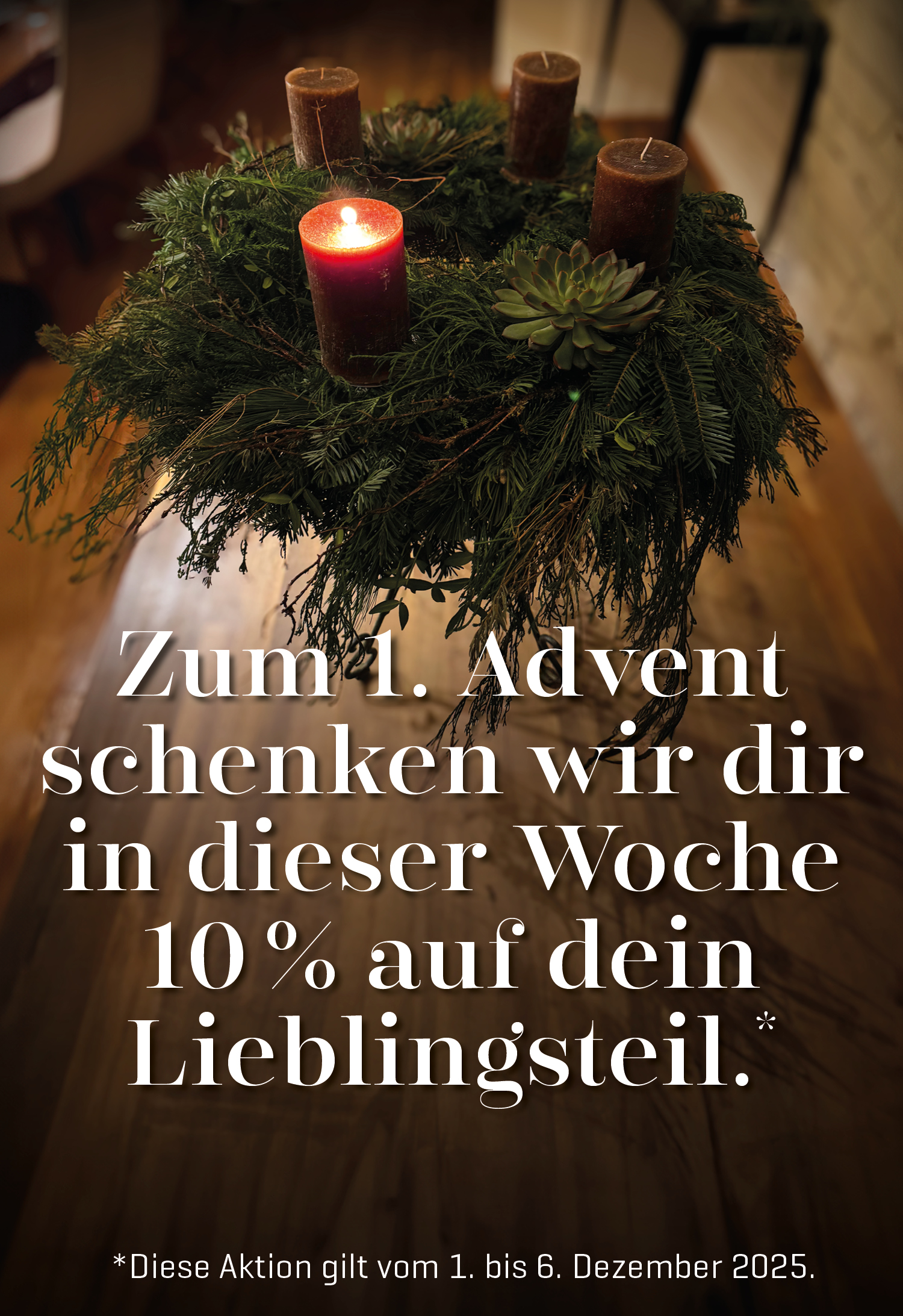 Zum 1. Advent schenken wir dir vom 1. bis 6. Dezember 10 % auf dein Lieblingsteil.