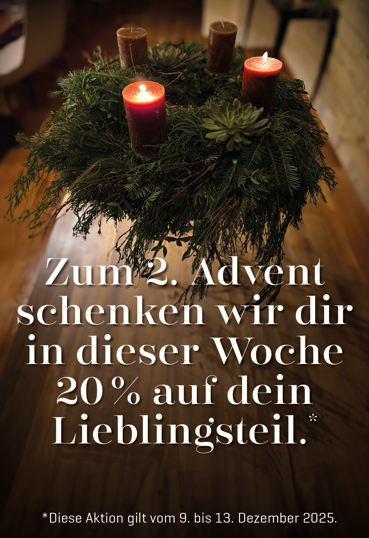 Zum 2. Advent schenken wir dir vom 9. bis 13. Dezember 20 % auf dein Lieblingsteil.